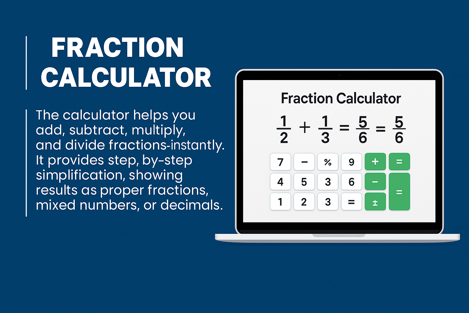 The Fraction Calculator helps you add, subtract, multiply, and divide fractions quickly and accurately. Whether you’re a student learning fractions or a professional working with ratios, this tool makes it simple to perform complex fraction operations instantly.