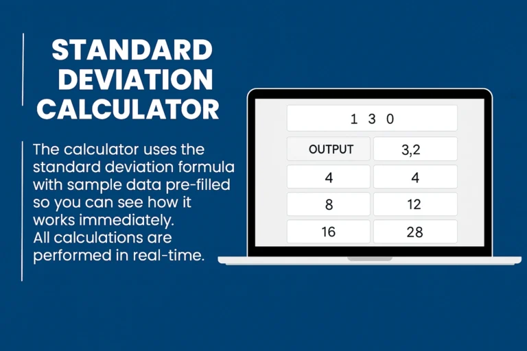 The Standard Deviation Calculator helps you quickly measure how spread out a set of numbers is from the average (mean)....